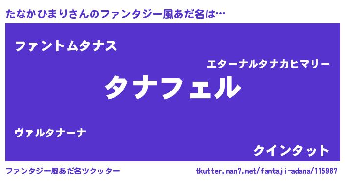 | ヒーロー風カッコイイあだ名 | 『スーパータナカヒマリ』『黄金騎士タナ』 |