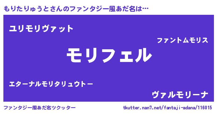 | 男性向けラノベタイトル風あだ名 | 『モリタリュウトアートオンライン』 |