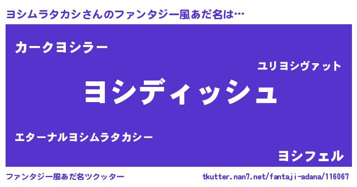 | ヘコむあだ名 | 『ヨシムラタカシ(遠い目)』『ヨシにゅー』 |