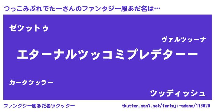 | 男性向けラノベタイトル風あだ名 | 『つっこみぷれでたーに滅ぼされるだけの簡単なお仕事です』 |