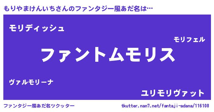 | 男性向けラノベタイトル風あだ名 | 『ダンジョンにもりやまけんいちを求めるのは間違っているだろうか』 |