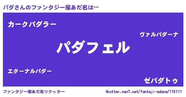 | 男性向けラノベタイトル風あだ名 | 『パダアートオンライン』『緋弾のパダ』 |