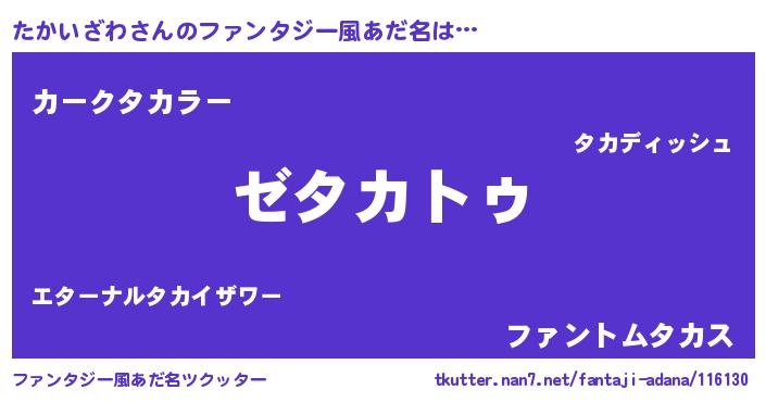 | 意味不明あだ名 | 『自称たかいざわ』『永久保存たかいざわ』 |
