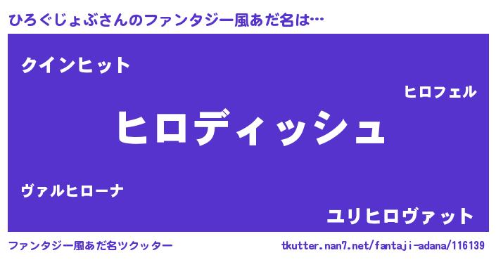 | 男性向けラノベタイトル風あだ名 | 『ひろぐじょぶという概念が存在しない退屈な世界 』 |