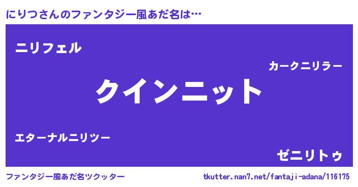 | ポケモン風あだ名 | 『ニリゴンZ』『ニックウザ』 |
