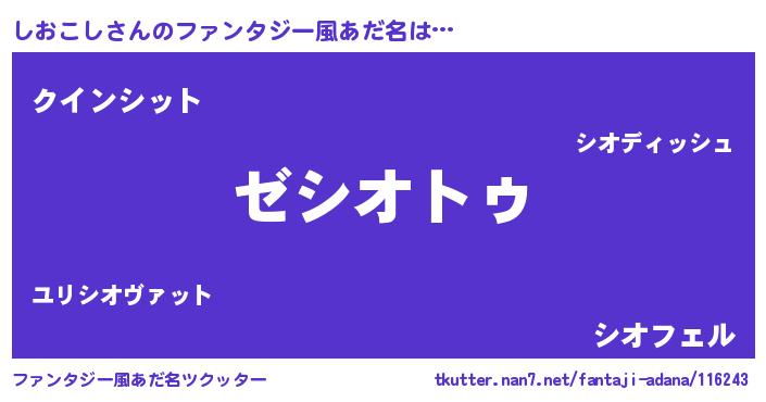 | 男性向けラノベタイトル風あだ名 | 『Re:しおこしから始める異世界生活』 |
