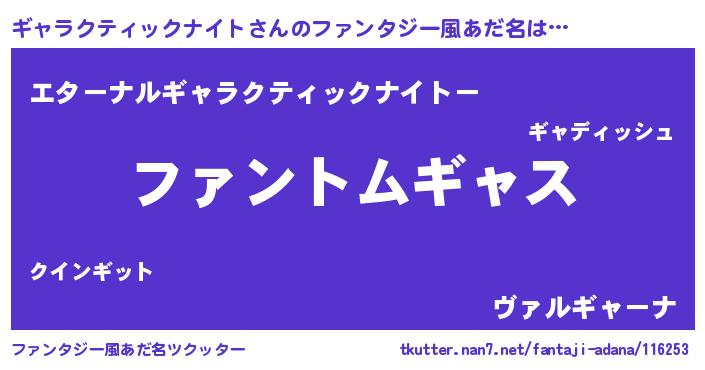 | 意味不明あだ名 | 『とにかく怪しいギャラクティックナイト』 |