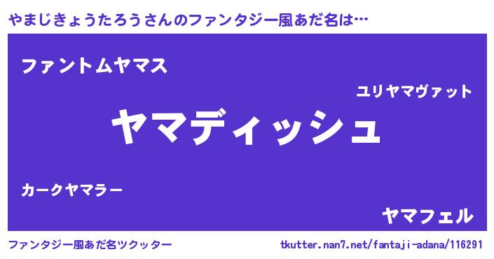 | 欧米人風あだ名 | 『ダルビッシュやまじきょうたろう』 |