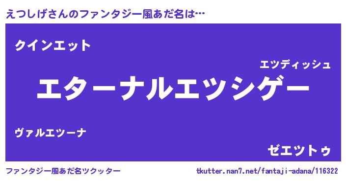 | 意味不明あだ名 | 『えつしげフォーエバー』『自称えつしげ』 |