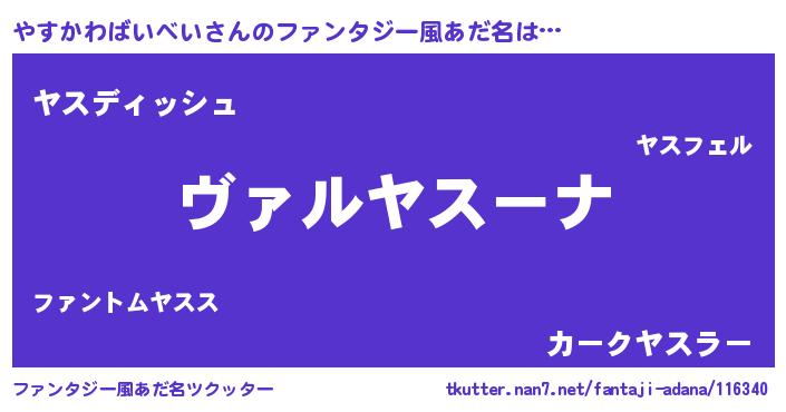 | 女子向けラノベタイトル風あだ名 | 『悪役やすかわばいべいに転生したようですが、知った事ではありません』 |