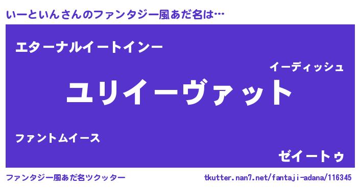 | 女子向けラノベタイトル風あだ名 | 『いーといんの玉の輿計画!』 |