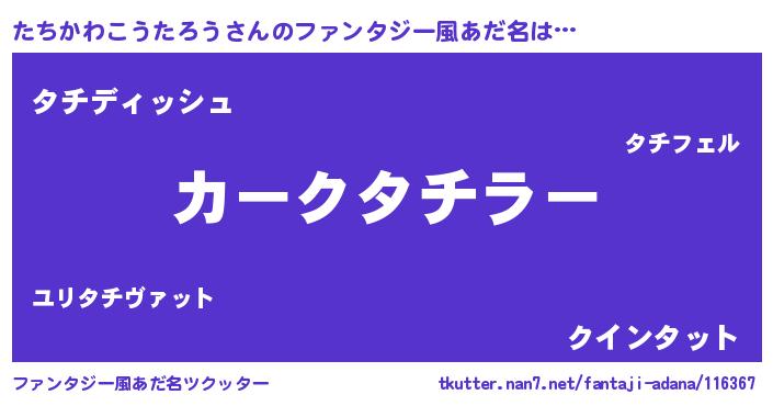 | 男性向けラノベタイトル風あだ名 | 『緋弾のタチカワコウタロウ』 |