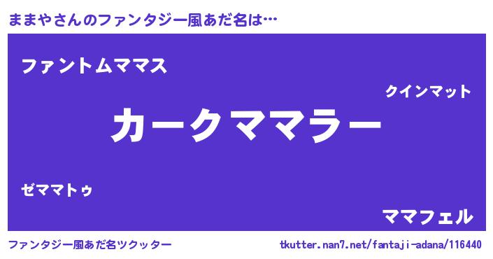 | 男性向けラノベタイトル風あだ名 | 『緋弾のママヤ』『ままやの憂鬱』 |