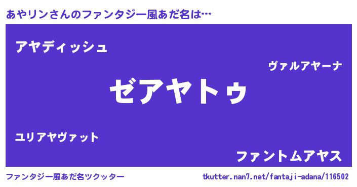| ポケモン風あだ名 | 『アヤセウス』『ゼニアヤ』 |