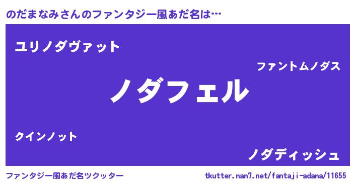 | 男性向けラノベタイトル風あだ名 | 『ノダマナミアートオンライン』 |