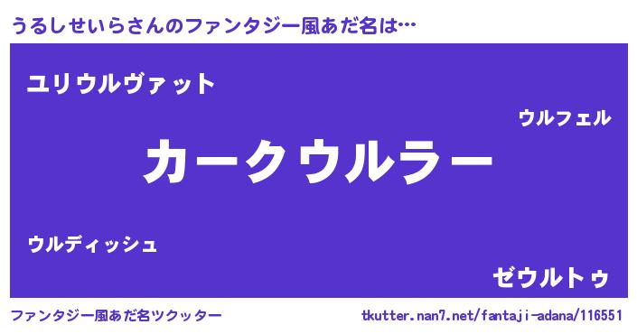 | 欧米人風あだ名 | 『うるしせいら・ステッグマイヤー』 |