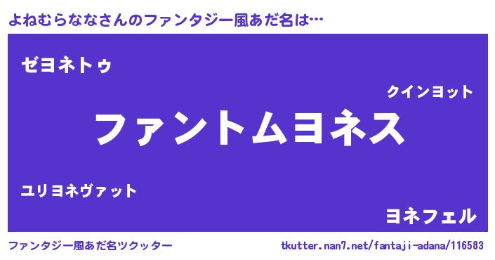 | ポケモン風あだ名 | 『ヒヨネムラナナ』『ヨネセウス』 |