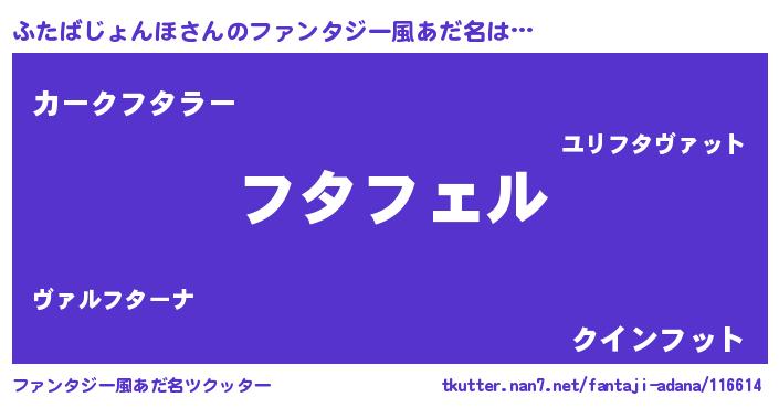 | 男性向けラノベタイトル風あだ名 | 『ふたばじょんほの憂鬱』 |