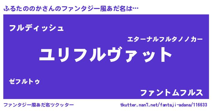 | 男性向けラノベタイトル風あだ名 | 『転生したらふるたののかだった件』 |