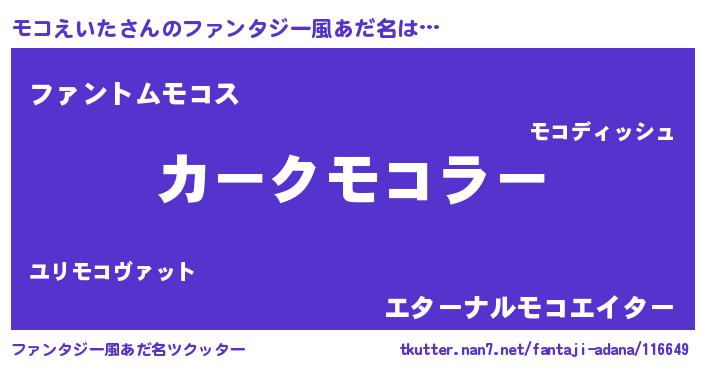 | 意味不明あだ名 | 『とにかく怪しいモコえいた』 |