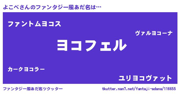 | 男性向けラノベタイトル風あだ名 | 『ヨコベアートオンライン』 |