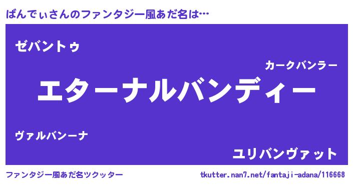 | 意味不明あだ名 | 『ばんでぃフォーエバー』『自称ばんでぃ』 |