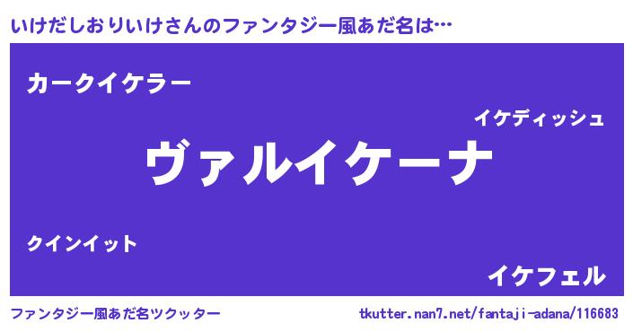 | 男性向けラノベタイトル風あだ名 | 『この素晴らしい世界にいけだしおりいけを!』 |