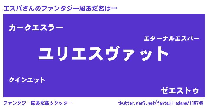 | ヒーロー風カッコイイあだ名 | 『超時空戦士エスパ』『愛の使者エスパ』 |