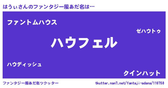 | 男性向けラノベタイトル風あだ名 | 『はうぃの憂鬱』『魔法科高校のはうぃ』 |