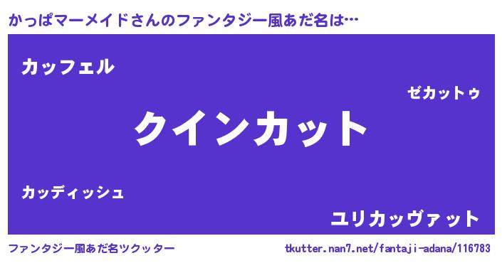 | 男性向けラノベタイトル風あだ名 | 『おまえをオタクにしてやるから、俺をかっぱマーメイドにしてくれ! 』 |