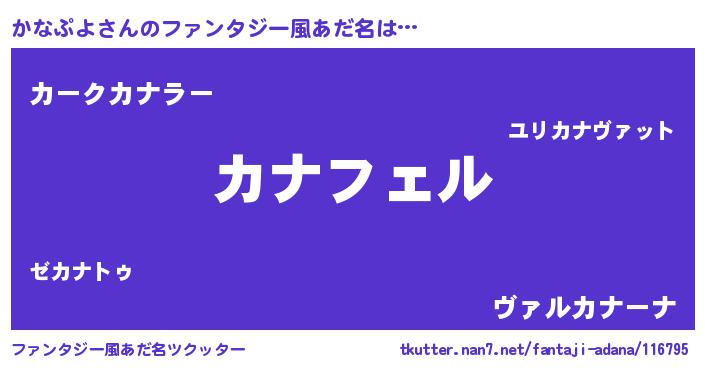| 意味不明あだ名 | 『ペロリンかなぷよ』『自称かなぷよ』 |