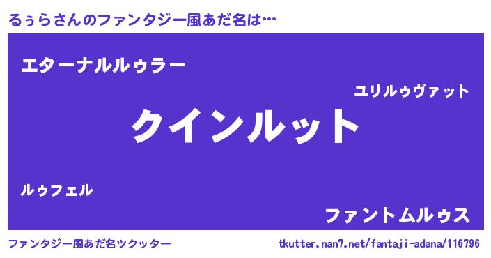 | ヒーロー風カッコイイあだ名 | 『慈愛の使者るぅら』『魔戒騎士ルゥ』 |