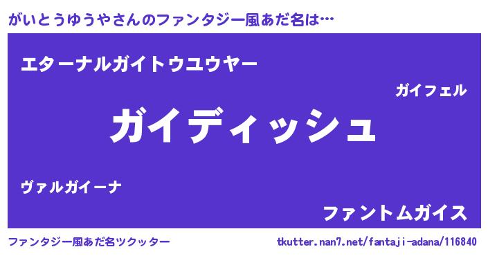 | ヒーロー風カッコイイあだ名 | 『ネオガイトウユウヤ』『幻影騎士ガイ』 |