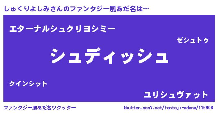 | ヒーロー風カッコイイあだ名 | 『ネオシュクリヨシミ』『暗黒騎士シュ』 |