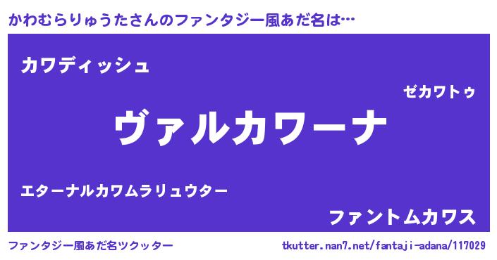 | ヘコむあだ名 | 『かわむらりゅうた(震え声)』『かわっ子』 |