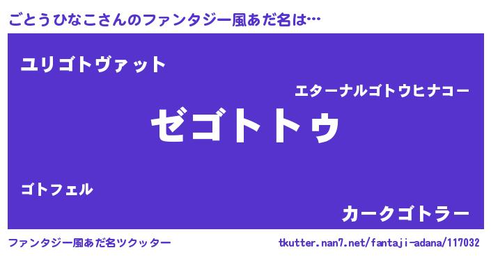 | 女子向けラノベタイトル風あだ名 | 『ごとうひなこストレイドッグス』 |