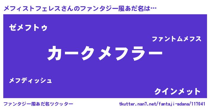 | ヘコむあだ名 | 『メフを』『メフィストフェレス(笑)』 |