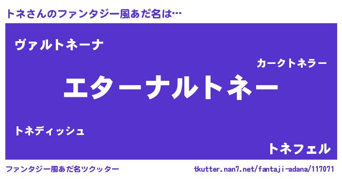 | 欧米人風あだ名 | 『トネクリステル』『ダレノガレトネ』 |