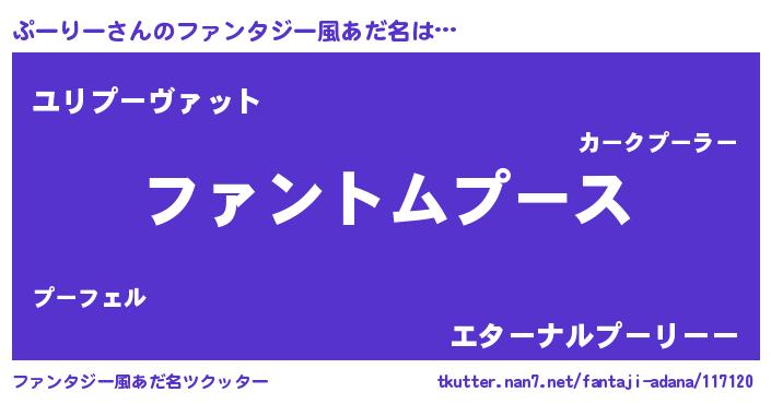 | ヒーロー風カッコイイあだ名 | 『魔戒騎士プー』『ウルトラぷーりーマン』 |