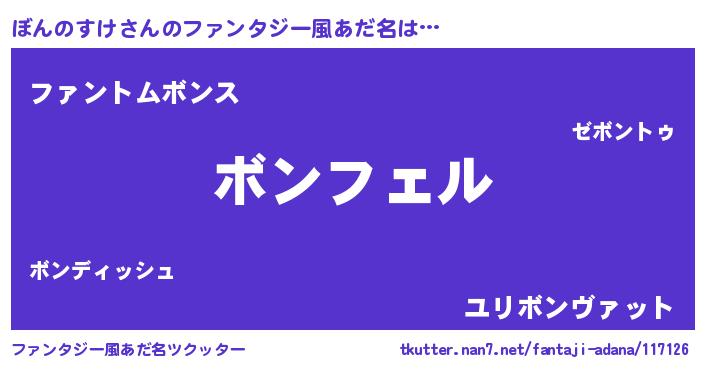 | ヒーロー風カッコイイあだ名 | 『スーパーボンノスケ』『暗黒騎士ボン』 |
