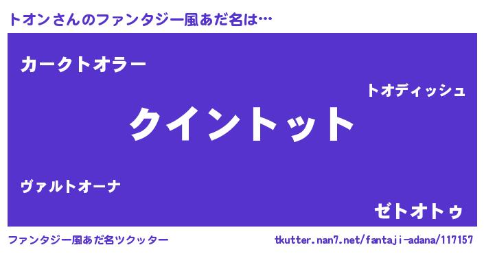 | 欧米人風あだ名 | 『ダニエルトオン』『ケンブリッジトオン』 |