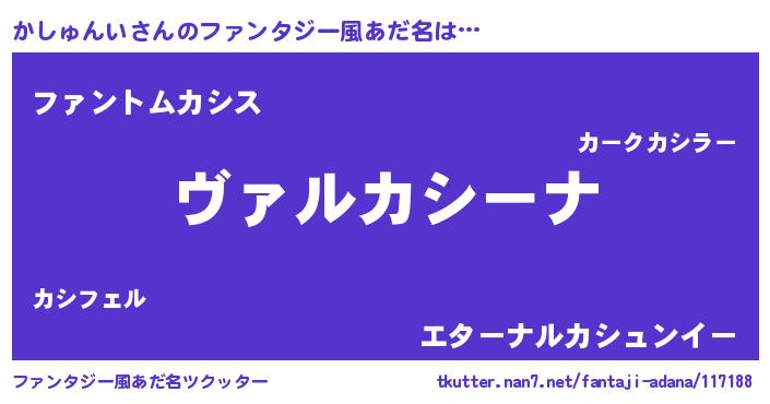 | 男性向けラノベタイトル風あだ名 | 『この素晴らしい世界にかしゅんいを!』 |