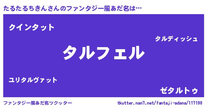 | 男性向けラノベタイトル風あだ名 | 『たるたるちきんの憂鬱』 |