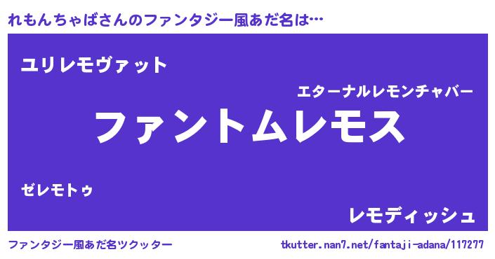 | 男性向けラノベタイトル風あだ名 | 『ダンジョンにれもんちゃばを求めるのは間違っているだろうか』 |