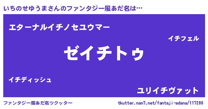 | 意味不明あだ名 | 『自称いちのせゆうま』 |