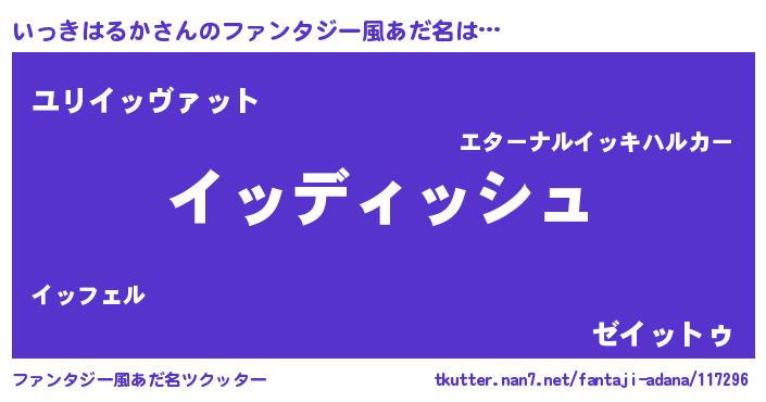 | 男性向けラノベタイトル風あだ名 | 『いっきはるかという概念が存在しない退屈な世界 』 |