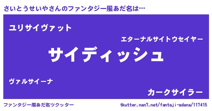 | ヒーロー風カッコイイあだ名 | 『ネオサイトウセイヤ』『仮面サイダー』 |
