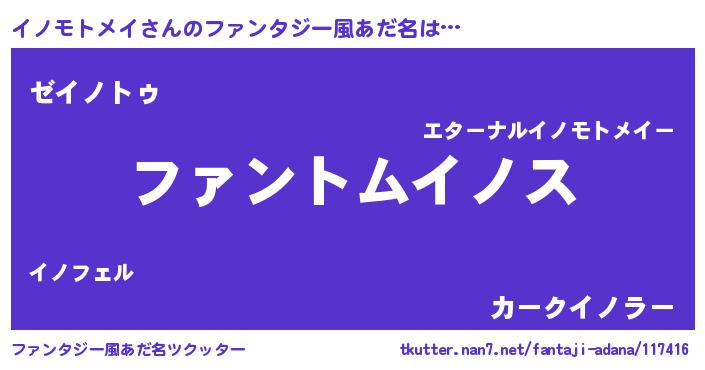 | 意味不明あだ名 | 『とにかく怪しいイノモトメイ』 |