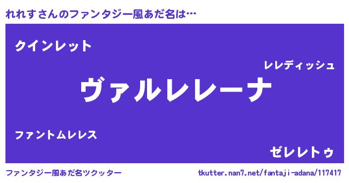 | 男性向けラノベタイトル風あだ名 | 『魔弾の王とれれす』 |