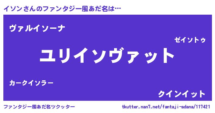 | 男性向けラノベタイトル風あだ名 | 『イソンスレイヤー』『魔弾の王とイソン』 |